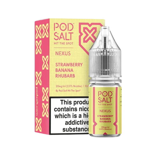 طعمی خاص و جذاب از ترکیب توتفرنگی شیرین با موز رسیده، در کنار ریواس تازه را در سالت نیکوتین استرابری بنانا روبارب پاد سالت از سری NEXUS تجربه کنید.