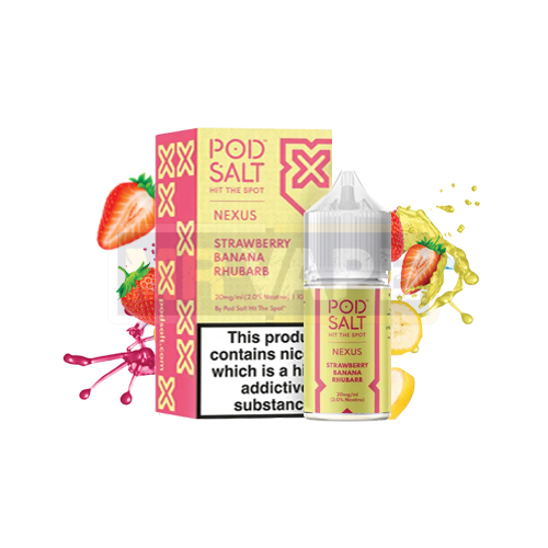 طعمی خاص و جذاب از ترکیب توتفرنگی شیرین با موز رسیده، در کنار ریواس تازه را در سالت نیکوتین استرابری بنانا روبارب پاد سالت از سری NEXUS تجربه کنید.